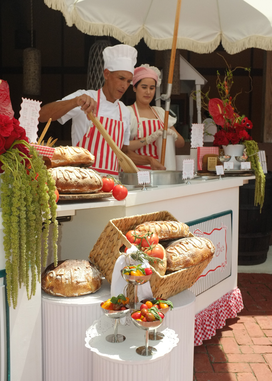 Our carts boast an array of gourmet local and imported delicacies, and are tastefully adorned with personalized menus, linens, fresh flowers, mini boards, and multiple decorative items that are thoughtfully curated to suit your event's aesthetic, while an assigned caterer is on hand to enhance your guest experience. Additionally, unlike conventional grazing tables, our carts are equipped with a cooling system, ensuring that our offerings remain fresh at all times. Relax as our professional staff ensures a white-glove immersive experience.
