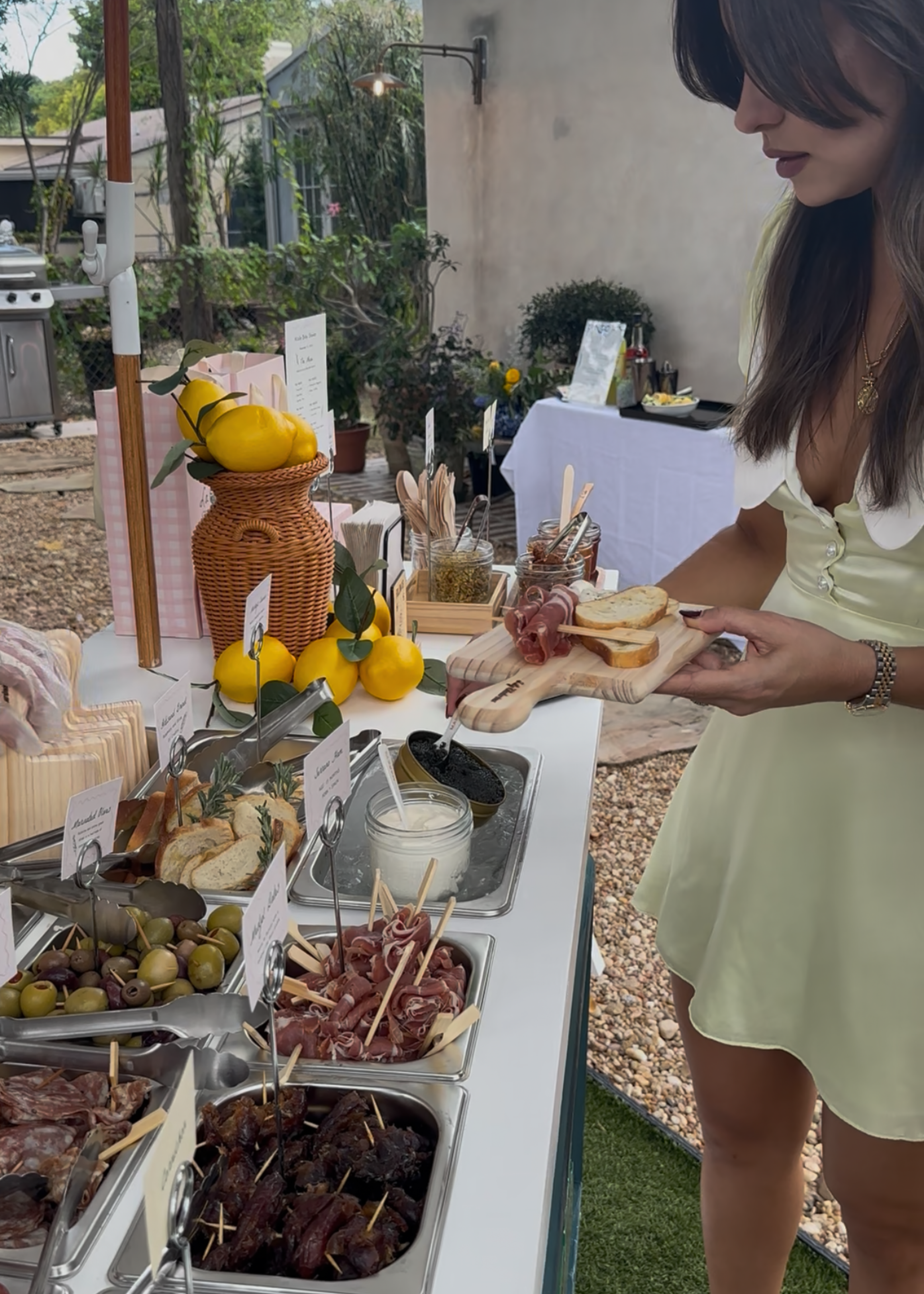 Elevate your event with our fully serviced cart of bottomless charcuterie for 2 hours. Our team will ensure a bespoke experience, from freshly restocking any empty slots, to guiding your guests into creating the most delectable mini tablas. Every cart is meticulously curated to fit your event colors and aesthetic. Additionally, unlike conventional grazing tables, our carts are equipped with a cooling system, ensuring that our offerings remain fresh at all times. Relax as our professional staff ensures a white-glove immersive experience.